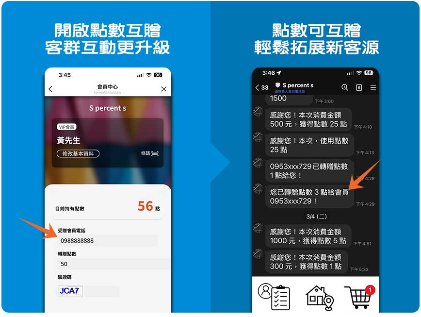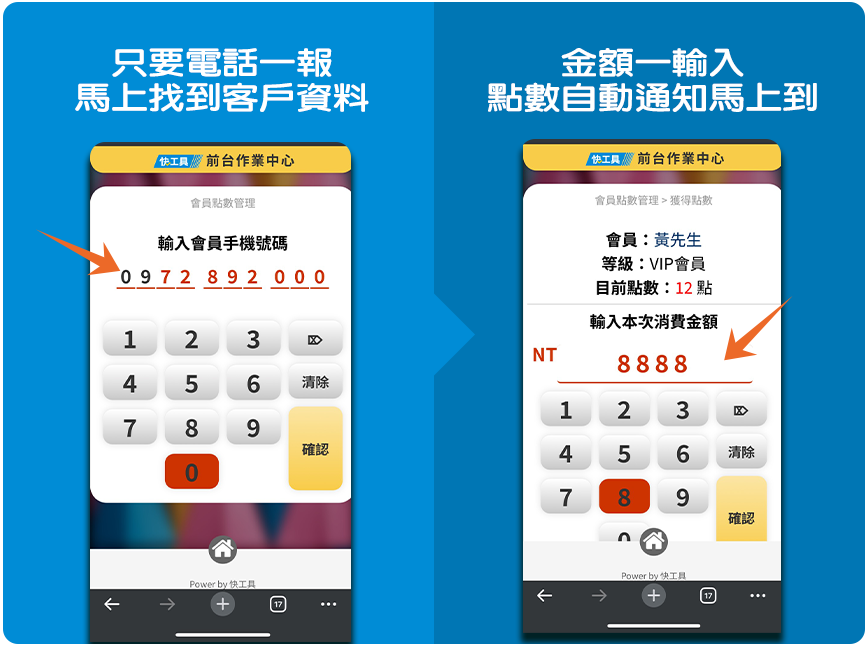 客戶只要報電話,就可以馬上集點,獲得點數馬上收到訊息通知