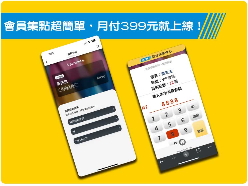 在 S percent s,我們重視顧客輕鬆無壓的購物體驗,因此會員系統必須直覺好用。快點數正好符合需求:顧客結帳時報手機號碼即可集點,無需下載 App 或登入帳號,不影響購物流程。點數入帳後還會即時收到 LINE 通知,清楚顯示點數明細,讓顧客感受到透明與參與感。整體流程快速簡單,無需額外教學,一句話就能完成會員建立與集點,對我們這樣的小品牌來說,既實用又貼心。