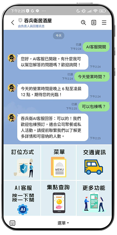 利用LINE官方帳號,可以將所有客戶服務整合成圖文選單:商品 的保固查詢與登錄、LINE客服、甚至結合LINE電子會員系統,納 入更多專屬會員的服務與優惠,不只讓客戶覺得便利貼心,更能 提升品牌形象與黏著度。